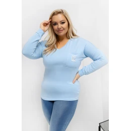 Košile plus size s klasickým, každodenním charakterem je skvělou základnou pro mnoho stylizací. Hladký vzor jí dodává univerzálnost, díky čemuž ji lze snadno sladit jak s džíny, tak s látkovými kalhotami nebo legíny. Standardní délka zajišťuje, že košile dobře padne na postavu a poskytuje pohodlí po celý den. Model je vyroben z mimořádně měkkého mikromodalu s přídavkem elastanu, který je příjemný na dotek, prodyšný a elastický. Dlouhý rukáv a výstřih ve tvaru srdce decentně zdůrazňují krk a dekolt, přidávají lehkost celku. Košile nemá zapínání, což zvyšuje pohodlí při nošení. Stylovým akcentem je kapsa na úrovni hrudníku zdobená dekorační nášivkou, která láme jednoduchý tvar a dodává košili moderní charakter.
