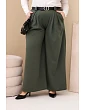 Nohavice majú vysoký pás a sú vybavené elegantným čiernym opaskom s ozdobnou sponou, ktorý zvýrazňuje pás a dodáva celkovému vzhľadu šarm. Široké nohavice opticky predlžujú nohy, vďaka čomu postava pôsobí ľahko a proporcionálne.
