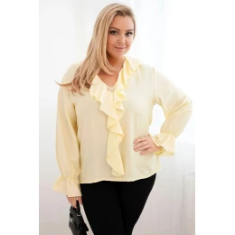 Plus veľkosť dámske viskózové blúzka s volánom a ozdobné brošne žltá