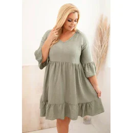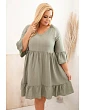Plus veľkosť dámske viskózové šaty s azúrovou výzdobou Khaki