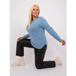 svetlomodrý plus size sveter s rebrovanými manžetami .