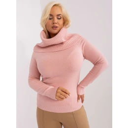 Svetloružový plus size sveter s rebrovanými manžetami.