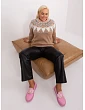 Tmavobéžový dámsky plus size sveter so vzormi .