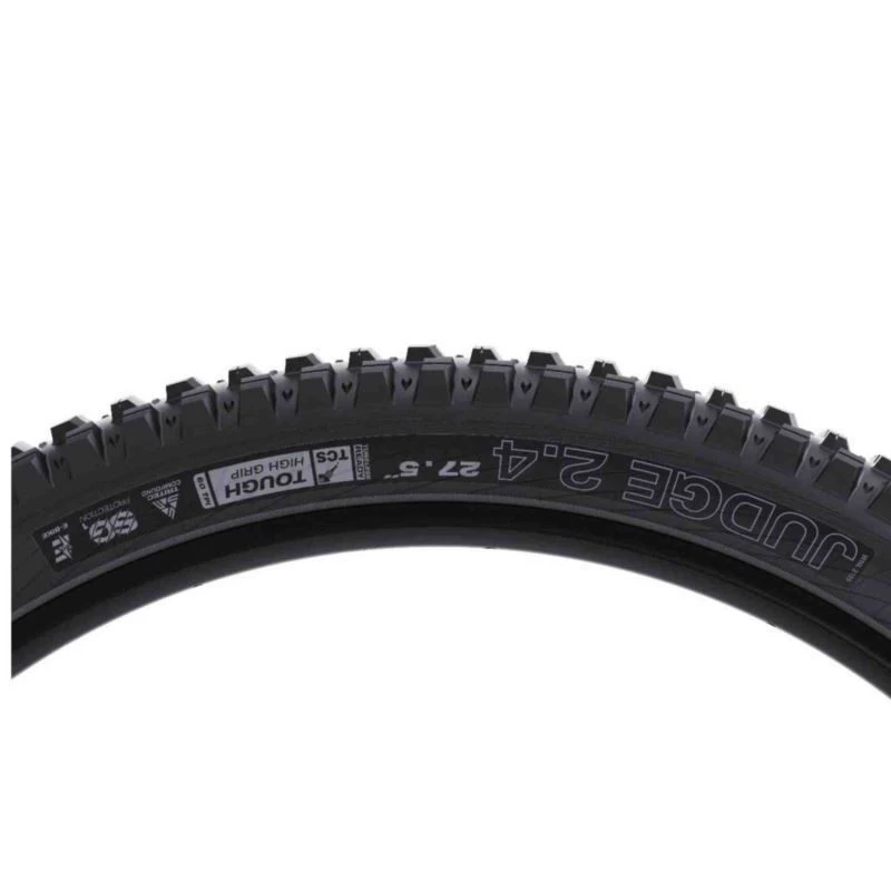 - Pneumatika Judge má široké, blokové bloky, ktoré maximalizujú priľnavosť pri brzdení a zlepšujú životnosť pneumatiky. Bočné bloky presahujú bočnicu pneumatiky, čím ju chránia pred prerezaním pri zatáčaní vzad. Odporúčame kombinovať pneumatiku Judge ako zadnú pneumatiku s pneumatikou Verdict 2,5 alebo Vigilante 2,5 vpredu.