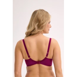 Biustonosz semi-soft Veronika Art. 931 w głębokim, bordowym odcieniu chianti to zmysłowa i elegancka propozycja dla kobiet ceniących komfort oraz szykowny wygląd. Model z półusztywnianymi miseczkami doskonale podtrzymuje i modeluje biust, zapewniając naturalny, pełny kształt. Górna część miseczki wykonana jest z delikatnego tiulu i kwiatowej koronki, która subtelnie zdobi dekolt. Elastyczne ramiączka z regulacją, solidne fiszbiny oraz ozdobna aplikacja z przodu dodają całości wyrafinowanego stylu. To idealny wybór zarówno na co dzień, jak i na romantyczne wieczory