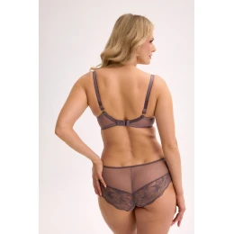 Biustonosz półusztywniany SS5 to wyjątkowe połączenie elegancji, komfortu i precyzyjnego modelowania biustu. Unowocześniona konstrukcja oparta na średnio zabudowanym kroju, z podwyższonym dołem miski, skutecznie zakrywa sutek i daje poczucie komfortu. Górna część miseczki wykonana została z transparentnego tiulu, który subtelnie eksponuje dekolt. Dolna część uszyta z elastycznej koronki, podszytej cienką pianką gorseciarską, zapewnia dobre podtrzymanie i delikatne uniesienie biustu. Całe plecy skonstruowane z podwójnej warstwy elastycznego tiulu sprawiają, że bielizna dopasowuje się idealnie do sylwetki, a jednocześnie pozostaje lekka i oddychająca. Stylowy detal w postaci biżuteryjnej zawieszki między miseczkami dopełnia całości.