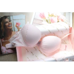 Jemná, světle růžová barva a sexy střih - Aura II je podprsenka, která výrazně zvětšuje prsa. Košíčky s pevnými nevyjímatelnými pěnovými vycpávkami a kosticemi dokonale shromažďují, zvedají a tvarují poprsí. Obdaří vás sexy výstřihem. Uprostřed je malá saténová mašle. Bez ramínek, nastavitelná ramínka.