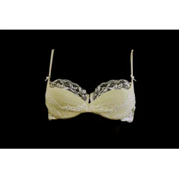 Podprsenka s kosticami, mierne vystužená, z tylu a čipky. Saténové mašle, dvojité popruhy.: