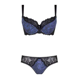 Hypnotizující kobaltová barva... Květinový potisk vycházející z krásných indických ornamentů. Tato podprsenka je především chválou ženské krásy, kterou podtrhuje jemný vzor a barva. Okamžitě se odlišuje od ostatních. Černé tylové doplňky ve výstřihu umocňují dojem elegance a dobrého vkusu. Polovyztužený střih s kosticemi dobře pozvedne a vytvaruje prsa.