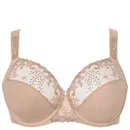 Podprsenka s kosticí s plným košíčkem z úpletu a výšivky.Tvar košíčků na spodní části pro optimální oporu a větší pohodlí.Třídílná konstrukce košíčku pro zakřivený tvar.Vyšívané horní části košíčků s kosticemi.Spodní část košíčků je podšitá bavlnou pro větší pohodlí a po stranách košíčků je vyztužená neprůhledným úpletem pro větší oporu. Vyšívaný střed předního dílu s vroubkovaným lemem, podšitý tuhým tylem. Baletní záda z pružného úpletu pro optimální podporu.Nastavitelná ramínka s guipure akcenty.