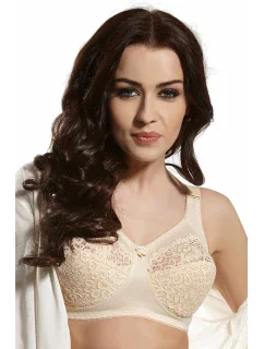 Dámska podprsenka 577 Viki - hrubšie ramienka - nevystužené košíčky bez kostice - neobvyklý strih - košíčky sú zdobené jemnou čipkou - medzi košíčkami jemná mašlička na ozdobu.