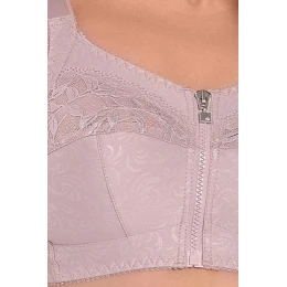 Biustonosz Zuza 586 to idealna propozycja dla Pań z pełniejszym biustem, które cenią sobie komfort, wygodę i subtelną kobiecość. Model wykonany z miękkiego materiału bez fiszbin gwarantuje swobodę ruchów oraz doskonałe dopasowanie. Zapięcie z przodu na zamek ułatwia zakładanie i zdejmowanie, a delikatna koronka z prześwitującą podszewką w górnej części dodaje uroku i lekkości. Szerokie, stabilne ramiączka oraz bawełniana lamówka zabezpieczająca szwy sprawiają, że biustonosz nie uciska i nadaje się do codziennego noszenia przez wiele godzin.