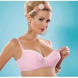 Dámska podprsenka pre dojčiace ženy, ktorá je vyrobená z hladkého ružového mikrovlákna.