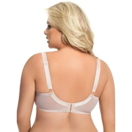 Polovyztužená podprsenka s kosticí a systémem rychlého zapínání vytvořená pro novopečené maminky. Vyrobeno z měkkého úpletu v béžové barvě, podšité bavlnou. Košíčky jsou zdobené krajkou s krásným květinovým motivem. Podprsenka s rychlým odepínáním ramínek umožňuje kojení "na požádání" při zachování vysoké úrovně pohodlí kojící ženy. Složení: 71 % polyamid, 21 % bavlna, 8 % elastan.
