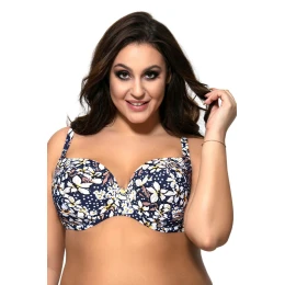 Biele kvety magnólie a sedmokrásky na tmavomodrom pozadí látky SK 114 pripomínajú bezstarostný čas dovoleniek. Plnohodnotná podprsenka s vypchávkami dokonale podopiera poprsie a zvýrazňuje zvodné krivky.