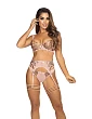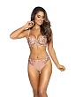 Podprsenka peekaboo push-up s otvorenými košíčkami v kombinácii s chokerom je odvážnou kombináciou prvkov, ktoré vám dodajú mimoriadny zmyselný pôvab. Funkcia push-up zvýrazní vaše prsia, dodá vám mimoriadnu zvodnosť a neodolateľný šarm. Jemná štruktúra súpravy dáva vyniknúť tomu najlepšiemu a výšivka ju zdobí ako šperk alebo zmyselné tetovanie. Súčasťou súpravy sú tangá v-9648 a peignoir v-8850. Zapínanie je na diskrétny dvojradový háčik. Materiálové zloženie: bavlna 48 %, polyamid 19 %, polyuretán 19 %, polyester 12 %, elastan 2 %