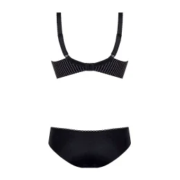 Vydejte se na cestu za elegancí. Toto spodní prádlo se nese ve znamení tmavších barev a vkusných doplňků. Jemný pruhovaný potisk se zde snoubí s krajkovým lemem ve výstřihu. Šedo-olovnatý odstín vypadá tajemně. Košíčky s kosticemi dobře sbírají a zvedají prsa, čímž vytvářejí smyslný dekolt (polovyztužený střih - skvělý pro větší poprsí). Nastavitelné popruhy. Ideální pro podzimní a zimní období.