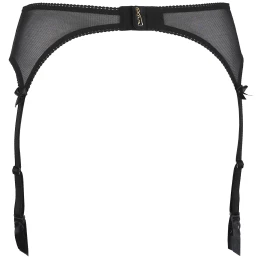 Svůdný a okouzlující podvazkový pás v hnědobéžové barvě zdobený rafinovanou černou krajkou. Zdůrazňuje pas a zvýrazňuje křivky boků, zadní část je z průhledného tylu a okraje jsou zakončeny ozdobným páskem na zoubky. Opasek se zapínáním na dva háčky a oka.