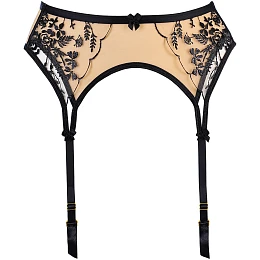 Měkký a decentní podvazkový pás s jemným černým, květinovým vzorem je něžným doplňkem, který promění celý outfit. Dodá mu charakter a šarm, díky němuž se budete cítit smyslně a svůdně. Pás je podšitý nude tylem a je vybaven podvazkovými nástavci, zapíná se výšivkou s dvojitým háčkem. Akcenty a regulátory jsou ve zlaté barvě. Zabudované boční kostice zvýrazňují strukturu. Materiálové složení: polyamid 85 %, polyester 11 %, elastan 4 %