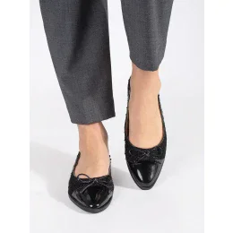 Pohodlné čierne baleríny pre ženy bez podpätku
