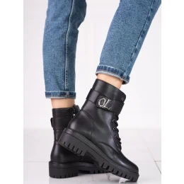Pohodlné dámské černé kotníčkové boty na plochém podpatku