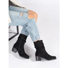 Pohodlné dámské černé kotníčkové boty na širokém podpatku