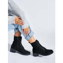 Pohodlné dámske čierne členkové topánky so širokým podpätkom