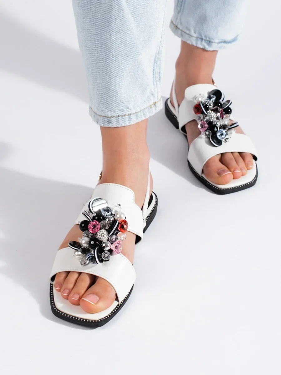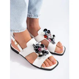 Pohodlné dámske sandále bielej farby na plochom podpätku