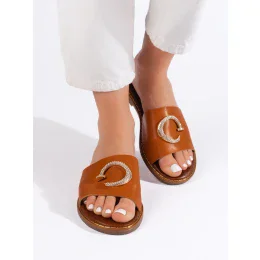 Pohodlné hnedé dámske ponožky na plochom podpätku