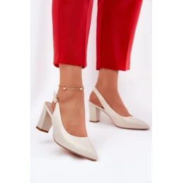 Pohodlné lodičky usazené na stabilním sloupkovém podpatku. Mají zapínání kolem kotníku na nastavitelný pásek s přezkou. Model s špičatou špičkou a odkrytou patou. Tyto boty jsou vyrobeny z eko kůže, zatímco stélka je z přírodní kůže. Tento model by měl být ve vaší skříni! Při výběru velikosti se řiďte tabulkou velikostí.: