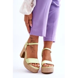 Pohodlné semišové sandály na podpatku Světle zelená model 21613574 - Boto