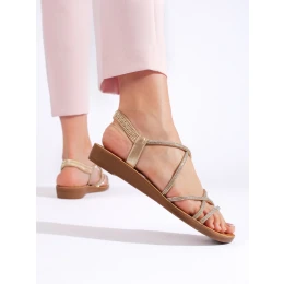 Pohodlné zlaté sandále na plochom podpätku pre ženy