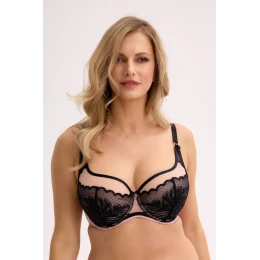 Pocíťte silu dokonale vymodelovaného poprsia vo výnimočnej polomäkkej podprsenke, ktorá spája eleganciu s dokonalou oporou. Mäkké košíčky z ružovej sieťoviny zdobené čiernou ozdobnou čipkou krásne odhaľujú dekolt. Vrchná časť košíčkov sa plynulo spája s ramienkom, čím vytvára prirodzený zdvíhací efekt a perfektne sedí. Ďalšie zvislé prierezy vo vystuženej spodnej časti košíčkov tvarujú a nadvihujú prsia, čím poskytujú pohodlie a príťažlivý tvar. Táto podprsenka je určená pre ženy, ktoré chcú vyzerať zmyselne a cítiť sa sebavedomo každý deň.