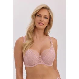 Podprsenka s polovinově zpevněnými košíčky je skvělou kombinací pohodlí, stabilní podpory a ženské elegance. Pečlivě zpracovaný střih krásně zdůrazňuje siluetu a efektivně shromažďuje prsa z boků do středu dekoltu, tvarujíc plný a přirozený tvar poprsí. Model se zapínáním na zádech je vybaven neodnímatelnými, nastavitelnými ramínky, které zajistí správné přizpůsobení a pohodlí při nošení po celý den. Vnitřní část košíčků pokrytá bavlnou zvyšuje pohodlí a umožňuje pokožce dýchat, díky čemuž se podprsenka osvědčí jak při každodenním nošení, tak při delším používání. Jemné krajkové a síťové ozdoby mu dodávají lehkost a smyslný charakter. Ozdobná mašlička mezi košíčky a jemné mašličky u ramínek jsou elegantním detail, který zdůrazňuje ženský styl. Je to ideální volba pro ženy, které oceňují pohodlí, funkčnost a propracované detaily v nesmírně ženském provedení.