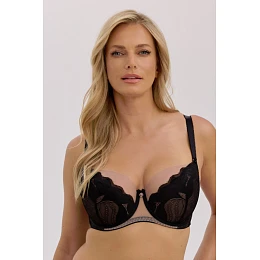 Polovystužená podprsenka Violeta Art. 1345 je jedinečným spojením zmyselnosti a elegancie. Podržaná v moka odtieňoch s akcentmi sýtej čiernej pôsobí mimoriadne elegantne a žensky . Mäkké, polovystužené košíčky krásne tvarujú poprsie a dodávajú mu prirodzený, zaoblený tvar. Priehľadná vrchná časť košíčkov z jemnej sieťoviny jemne zvýrazňuje dekolt a spodná časť - zdobená jemným čipkovým vzorom - dodáva eleganciu. Zadná časť z elastického mikrovlákna zaručuje pohodlie a dokonalé prispôsobenie.
