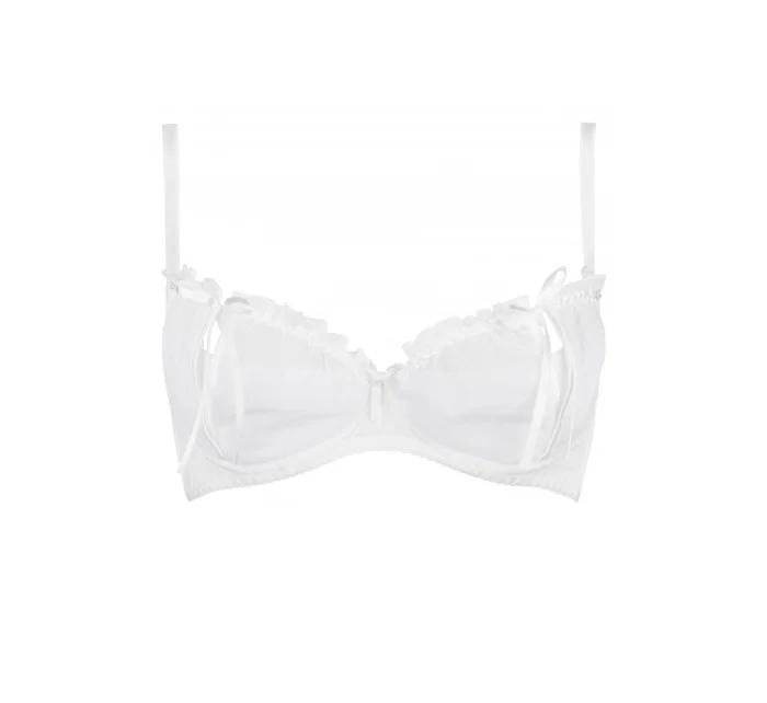 Zmyselná snehobiela polodupačka Neige, ktorá zvádza svojimi nepostrehnuteľnými prestrihmi na košíčkoch.Podprsenka je vyrobená z jemnej tylovej sieťoviny, ktorá zvýrazní a podčiarkne vašu ženskosť a zmyselnosť. Krásu modelu dotvárajú hravé mašle. Model má bočné kostice. Popruhy sa dajú nastaviť, ale nedajú sa odstrániť. Zapínanie je na dva háčiky s trojstupňovou možnosťou nastavenia veľkosti obvodu.Súpravu môžete vytvoriť spolu so string nohavičkami a podväzkovým pásom Neige.