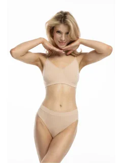 Klasická podprsenka jemne tvaruje a nadnáša poprsie. Vyrobené z hladkého úpletu v béžovej farbe. Jemná stužka medzi košíčkami dodáva bielizni šarm. Bezšvíkové šálky tepelne tvarované. Zadná strana je celá z hladkého úpletu. Nastaviteľné popruhy, neodnímateľné. Zvislé veľrybie kosti po stranách zabraňujú bočnému ryhovaniu.
