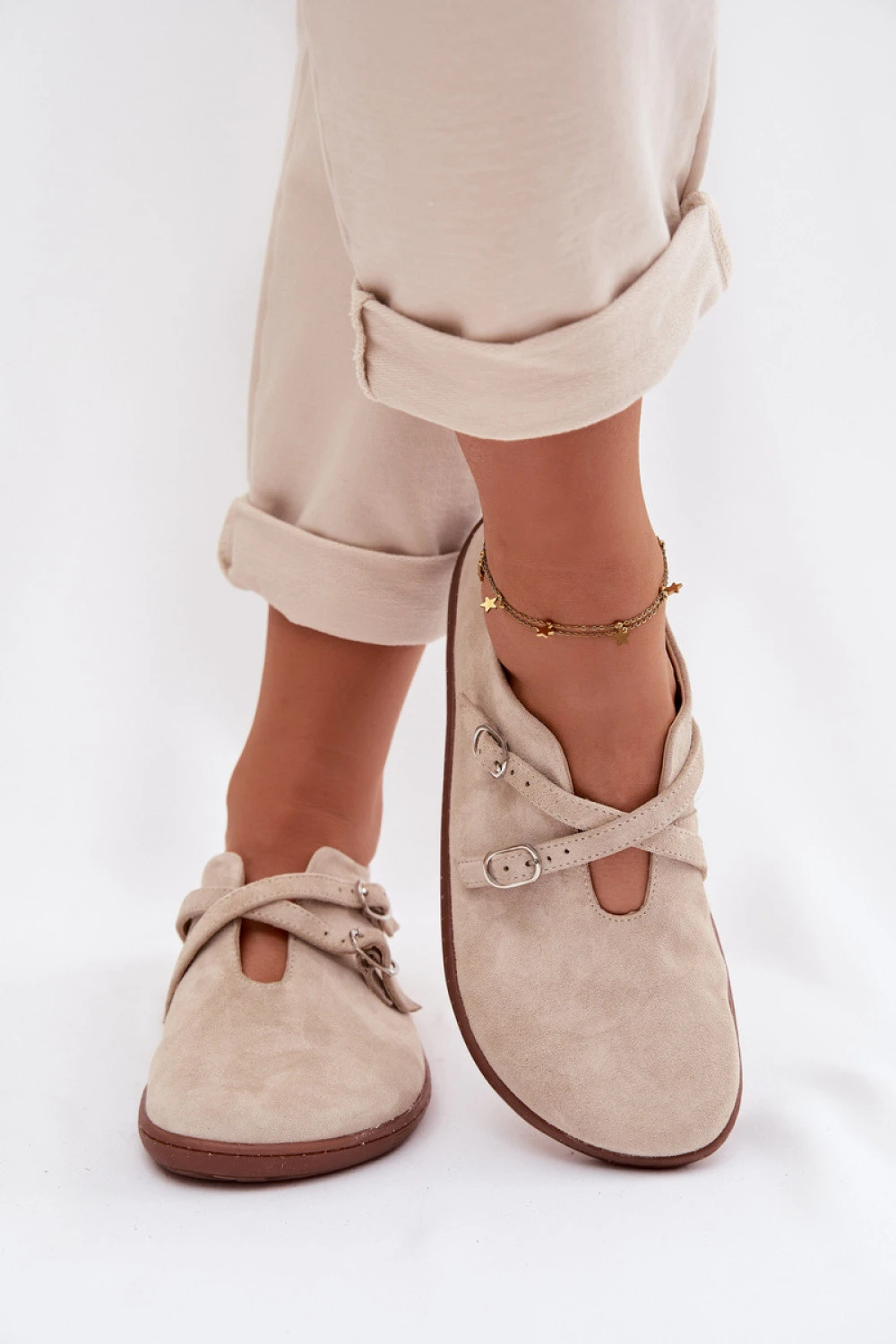 Tieto dámske topánky vyrobené z prírodného semišu v štýle Barefoot sú skvelou voľbou pre ženy, ktoré oceňujú prirodzený pohyb chodidla a maximálne pohodlie. Flexibilná, plochá podrážka a anatomický tvar umožňujú chodidlu pracovať prirodzeným spôsobom, čo zaručuje pohodlie počas celého dňa. V prednej časti sú dva prekrývajúce sa remienky, ktoré dodávajú jemný ženský nádych a jemne zvýrazňujú chodidlo. Tento model je skvelý na každodenné nosenie. materiál prírodný semiš