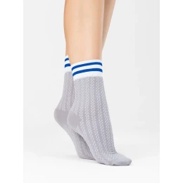 Ponožky jsou ozdobené jemným vypouklým vzorem. Lem modelu je ozdobený proužky v kontrastní barvě.