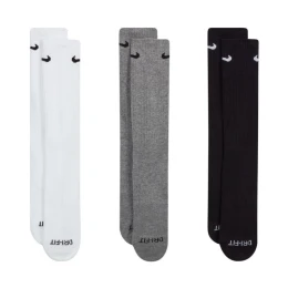 Nike Everyday Plus Cushioned 3 páry biele, sivé, čierne SX6888 964. Tieto ponožky Nike s dĺžkou 1/3 lýtka vám pomôžu udržať pohodlie počas fyzickej aktivity. Ergonomický dizajn a použitie odolných, elastických materiálov. Technológia Dri-FIT poskytuje priedušnosť a odvádza vlhkosť. Špeciálne pásiky sa tesne prispôsobia klenbe chodidla a poskytujú oporu. Odpruženie v oblasti prednej časti chodidla a päty. Horné manžety zabraňujú zrolovaniu ponožiek. Vrchné panely sú vyrobené z mäkšej priadze pre lepšie vetranie. Zosilnené oblasti päty a prstov zvyšujú odolnosť. 3 páry sú súčasťou balenia. Materiál: 62 - 69 % bavlna, 29 - 36 % polyester, 2 % spandex.