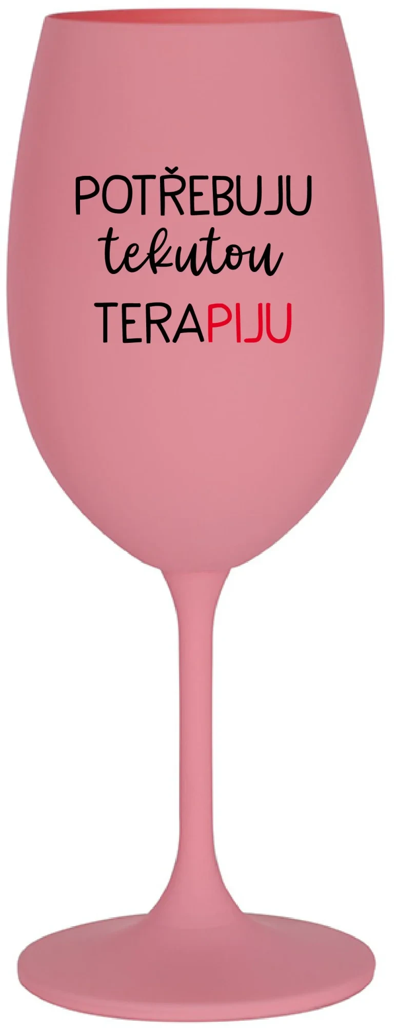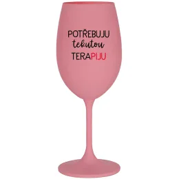 POTŘEBUJU TEKUTOU TERAPIJU - růžová sklenice na víno 350 ml