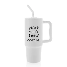 PRÁCE NEUTEČE, KÁVA VYSTYDNE! - bílý cestovní termohrnek 900 ml