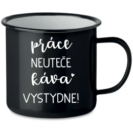 PRÁCE NEUTEČE, KÁVA VYSTYDNE! - černý plecháček 350 ml