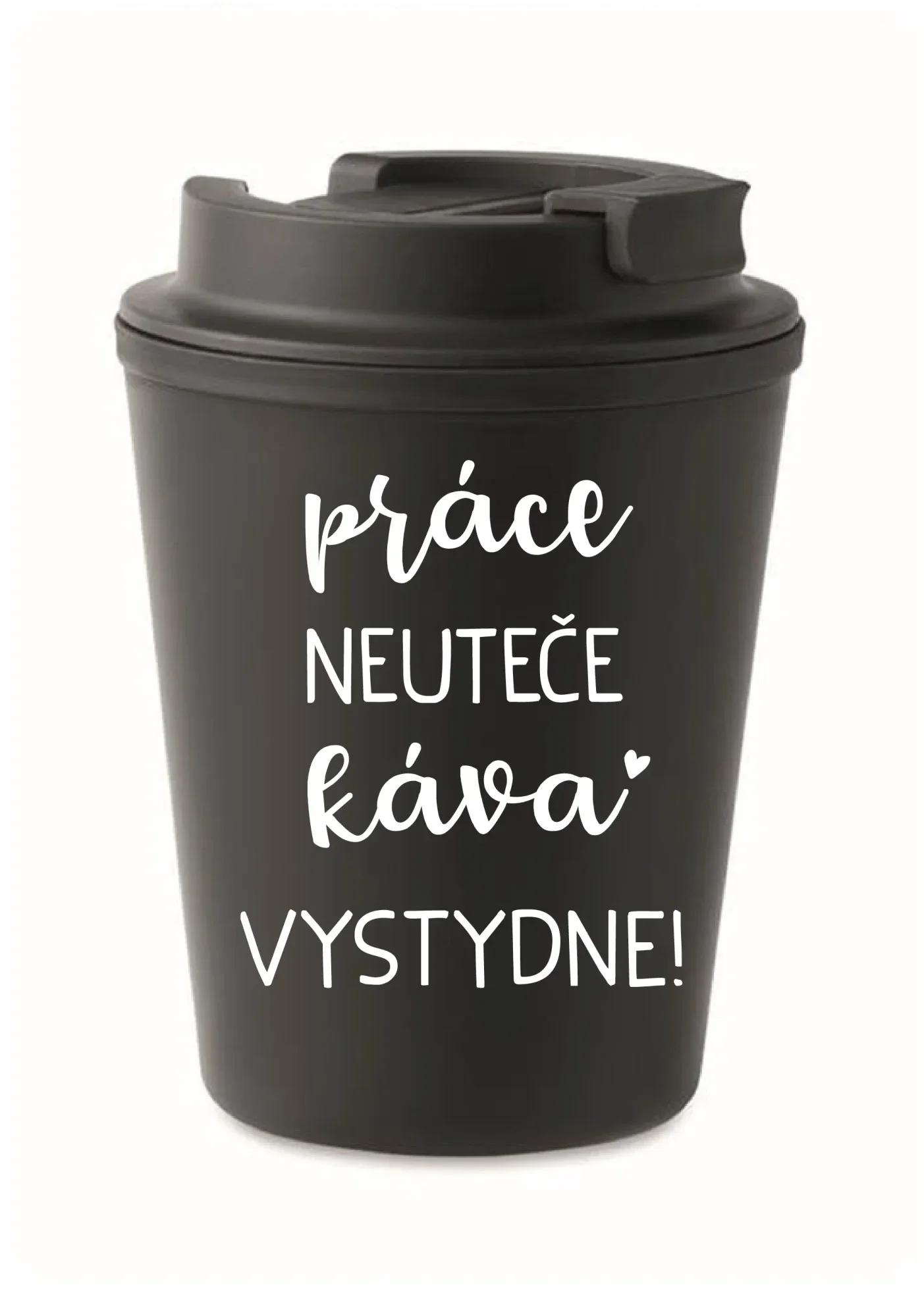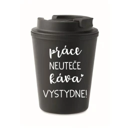 PRÁCE NEUTEČE, KÁVA VYSTYDNE! - černý termohrnek 300 ml