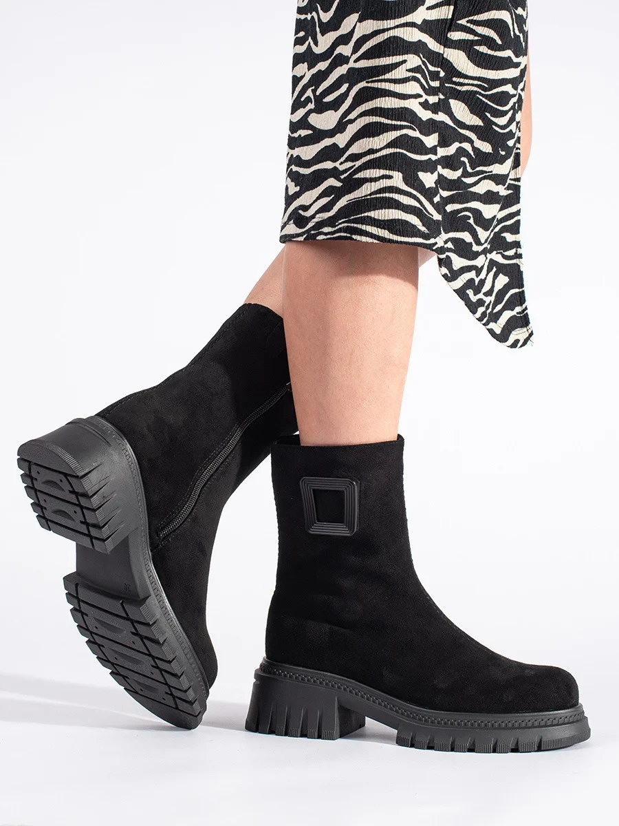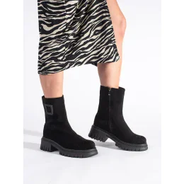 Praktické čierne dámske členkové topánky na plochom podpätku