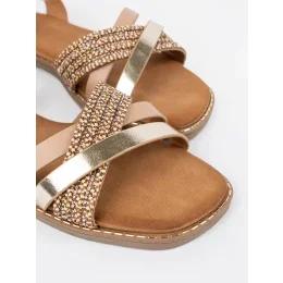 Pridanie recenzie k Praktické sandály dámské zlaté na plochém podpatku