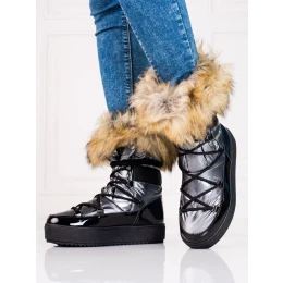 Praktické sivo-strieborné snežnice bez podpätku pre ženy