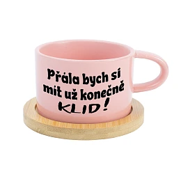 Keramický hrneček „Makronka“ s bambusovým podtáckem – Přála bych si mít už konečně KLID