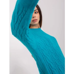 Tyrkysový sveter s kockami a rebrovaním .