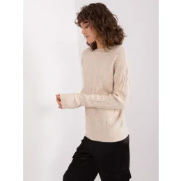 Svetlý béžový pletený sveter pre ženy s károvaným vzorom.